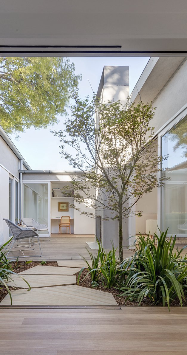 The third strategy was to externalize and elongate the entry sequence so that the small house is entered via the central courtyard. This enables the beautiful private landscape by Daniel Baffsky to be the first thing visible on entry.