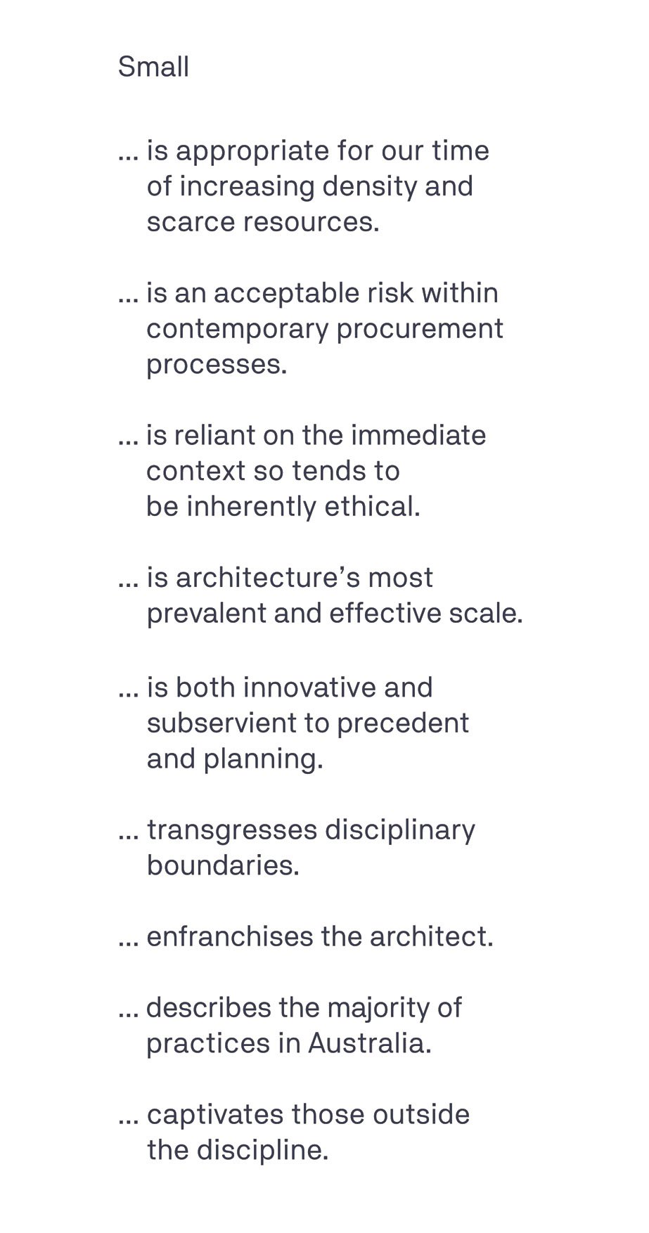 Smallness is the crucial precondition for the success of this potential future. One which demonstrates to us that architecture may in fact find greatest social resonance at the scale of the everyday.